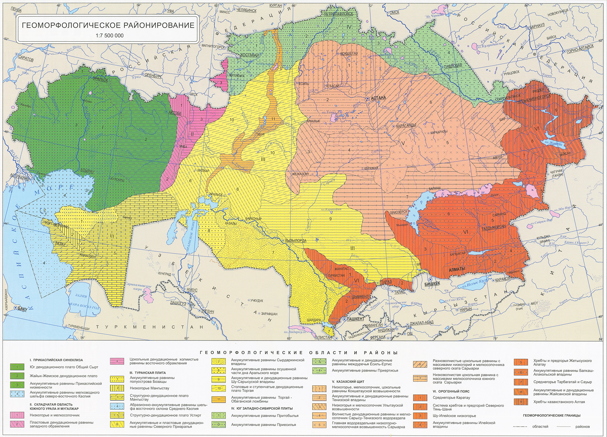 Map geomorphological regionalization of the Republic of Kazakhstan